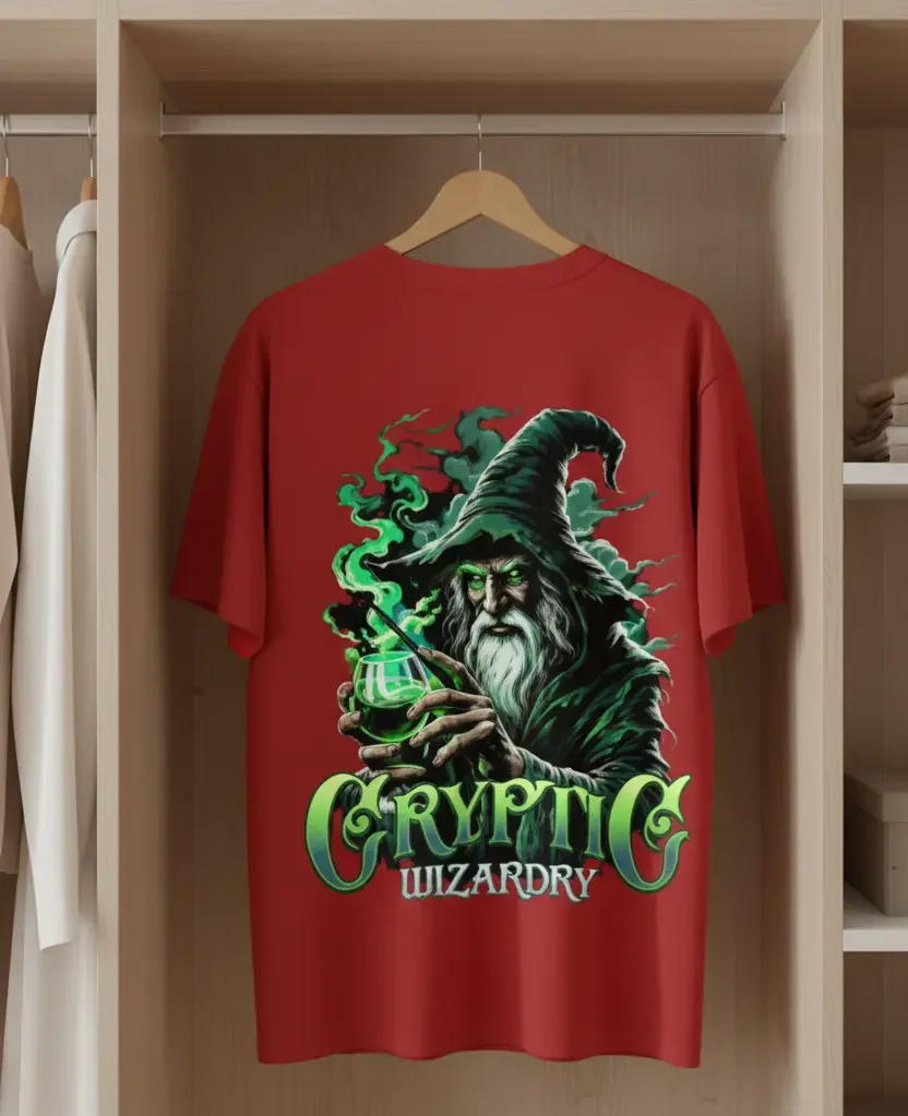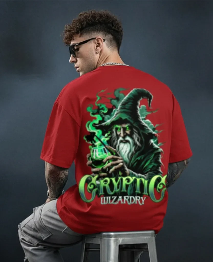 Step into the mystical realm with our “Cryptic Wizardry” oversized T-shirt, a perfect fusion of dark fantasy and street fashion. The design features a powerful wizard channeling green magical energy, symbolizing mystery, intellect, and inner power.