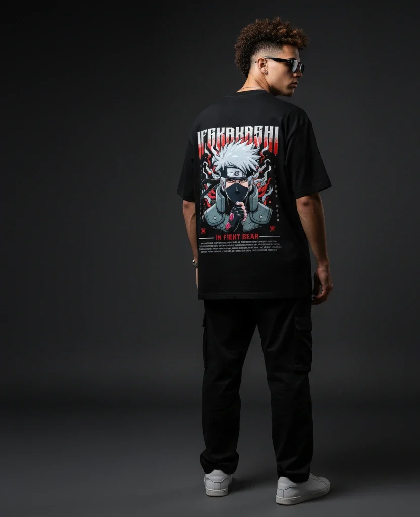 Unleash your inner shinobi with this Kakashi oversized graphic tee ⚡. Inspired by the legendary Naruto character, Kakashi Hatake, this shirt blends anime aesthetics with streetwear energy. The striking red-and-black design captures Kakashi’s mysterious vibe, making it a must-have for every anime fan + hypebeast fit lover.