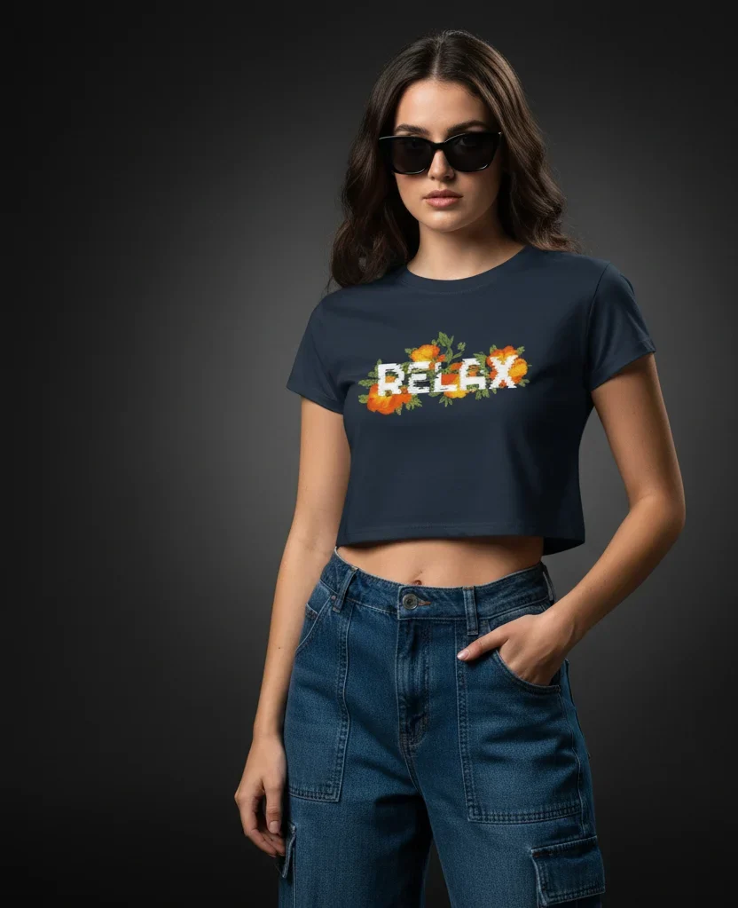 Upgrade your casual style with this chic girls crop top t-shirt featuring a bold “RELAX” graphic with vibrant floral design. Perfect for summer, streetwear, and everyday fashion, this stylish crop tee pairs effortlessly with jeans, shorts, or skirts. Soft, breathable fabric ensures comfort while keeping your look trendy and relaxed.